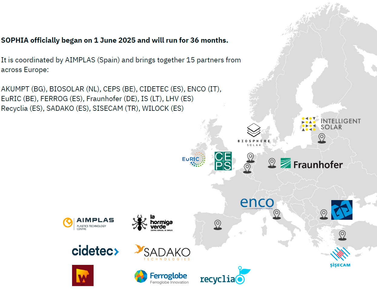 The SOPHIA project - Implementation of Advanced Digital Solutions to increase the circularity of PV panels throughout the full value chain – is an EU-funded Horizon Europe project that aims to implement Advanced Digital Solutions in end-of-life PV panels, involving the full value chain in order to increase their current reuse, repair and recycling rates.